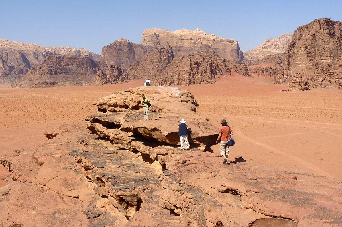 Ein perfekter Start in den Tag: Vom Berg Nebo aus, den schon Moses für einen Blick ins Gelobte Land besucht hat, blicken wir hinab auf unser Tagesziel, das Tote Meer. In Madaba erfahren wir Details über das Werk früher Geographen. Mosaikkünstler haben dort im 6. Jahrhundert eine Landkarte der Region angefertigt. Schauen Sie sich die Fische an, die das salzige Meer meiden! Nachmittags geht es abwärts: Am Toten Meer, dem tiefsten Punkt der Erde, lassen wir die Seele baumeln, baden und entspannen. Obligatorisch ist ein Foto, auf dem Sie auf dem Wasser liegend Zeitung lesen. Ein besonderes Erlebnis, von dem wir zu Hause berichten! 80 km (F, A)