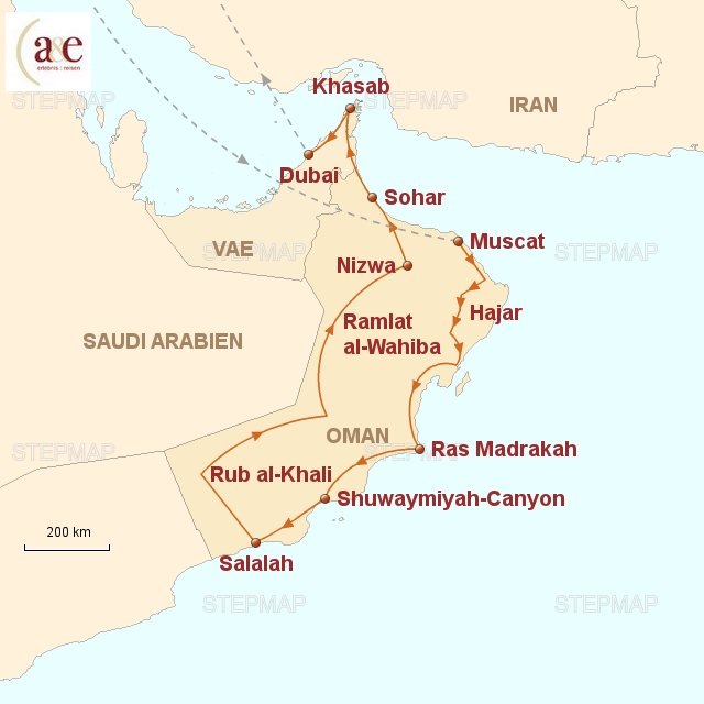 - Ab 2020 wird die Variante Muscat-Dubai nur noch 22 Tage lang sein (ein Tag an der Ostküste entfällt), die umgedrehte Richtung Dubai-Muscat bleibt bei 23 Tagen.